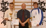 הצורה המסורתית של ברכה, הבעת הבנה, נכונות לביצוע פקודה. קידה, הבעת ברכה כללי התנהגות העברת כללי ההתנהגות בעמידה העברת כללי התנהגות בישיבה ברור לשבת בצורת "דזאדזן" לקום להתכונן ידיים לראש לעמוד בעמידת מוכנות להתחיל להפסיק החלפת צדדים החלפת עמידה להחליף רגל לבצע עם מאמץ/כוח צעקה עם ריכוז של האנרגיה הפנימית עם צעקה בסיס ריכוז נשימה קרב מרחק בין היריבים תוקף חוסם פעמיים, שלושה פעמים מצד אחד שלוש טכניקות נגדיות מתוכנן מראש קרב מתוכנן קרב חופשי קרב ללא הגבלות קרב לצעד אחד קרב לשני צעדים סיבוב לעצום עיניים לפתוח עיניים ללא פקודה, לספירה אחת כפול לחזור לעמידה התחלתית סוגי נשימה נשימה עמוקה נשימה רגילה נשימה הפוכה נשימה עם מאמץ סריה מתקן לשיפור הטכניקה הקרבית שבירת חפצים החלק הקדמי של האולם להשתחרר למשוך פנימה המצב ההתחלתי של היד, היד משוך פנימה. המצב ההתחלתי של הרגל, הרגל משוך פנימה. נא נתחיל תודה רבה חימום לפני האימון חימום בזמן האימון חימום רגליים חימום האצבעות לסובב שב-קום לשבת על הרגל שפגאט, מתיחות מתיחות רגלים, כאשר המשקל מועבר על כפות ידיים, על הרצפה. לשלוח קדימה לשלוח אחורה שני הידיים/רגליים יחד כפיפה חימום כפות ידיים, כאשר הידיים מחוברות יחד. ידיים על החגורה מקדימה ידיים על החגורה מהצדדים לסדר את הדוגי לנער ידיים לנער רגליים שכיבות שמיכה על האגרופים קפיצות כפיפות בטן בעיטות רגליים ממצב ישיבה המבחן לחגורה שחורה מתחיל! |